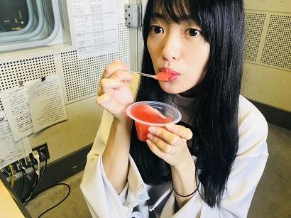 では、今週の庫出し。『シアター飯』に採用されたイチゴゼリーをカメレオンのようにぴょいんと口の中に入れる北原さん。その直前の模様がこちら。