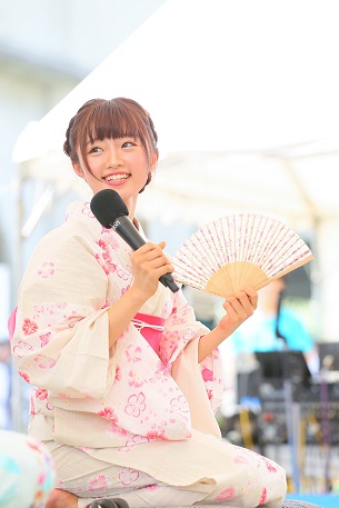 こちら、加藤美南あらため「加藤みなぞう」さん。何でも似合うんだろうけど、この浴衣、特に似合ってましたね。この柄、けっこう着る人を選ぶと思うんだけど、さすがさすが。大胆に大きなお花が散りばめられた柄ですが、何と言ってもみなぞうさんの笑顔の花が一番でございます。