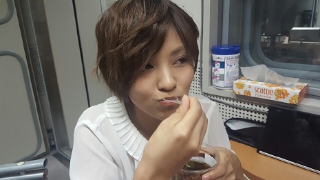 おお、これぞまさにあんみつ姫。もくろみ通り、姫はあんみつでご満悦でございました。ただ、歌の方は…何と言いますか、非常にフラットな音階で歌って頂きました。歌うまいのにね。姫。あと、姫らしくなく、相当照れる。