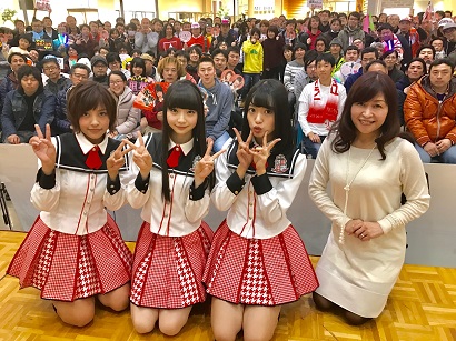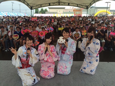 約800人を集めた新潟ふるさと村の特設ステージ。その皆さんの注目を全部持っていった荻野ゆか丸師匠の「笑点ダンス」。打ち合わせで3人に「いちばん座布団が少ない人には笑点のテーマで踊ってもらうんでよろしく」と言ったらホントにひっくり返ってた。みんな面白い子たちだよね。