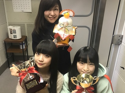 「2017年もオギ子・カニ子はやりますよー!」。非常によい心がけである。さすが保護者・石塚かおりが溺愛する娘たちであります。ということで、オギ子とカニ子には「思い出よりモノ!」ということで、番組から優勝カップを贈呈させて頂きました。