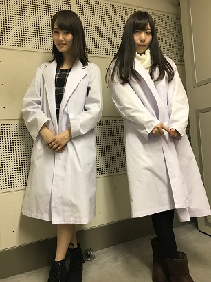 ほら。いいだろう。特に今回の2人はいいだろう。研究室?薬剤師?保健室の先生?…ご想像に委ねます。がたねえが「何で白衣なんですかっ?」とうろたえていたんだけど、実は以前、かとみなちゃんとおかっぱちゃんに白衣を着せて番組をやらせたらえらい反響頂いたので(お褒め、というより、なぜテレビでやらんのどちらかというとお叱り…)やってみた。BSNはテレビもありますからね。いつかきっと。