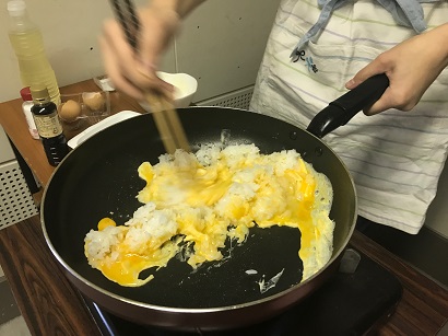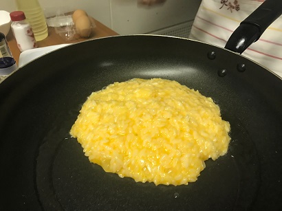 ごはんとタマゴがしっかりと分かれております。これを盛り付ければ、たろうチャーハンが完成であります。