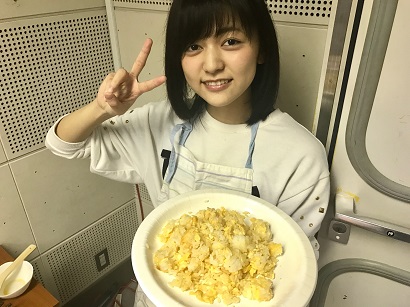 みーずん。「ほらほら、パラパラになるでしょ?」すげー。さすがみーずん。これはいい保育士さん、そしていいお嫁さんになれる。「男をつかむなら胃袋をつかめ」と言われてますが、チャーハンが上手に作れたら間違いナシだな。