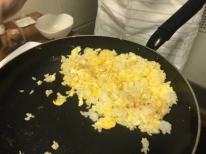 普段からたまごチャーハンを家で作っているというたろう。中村家スペシャルを作って頂いたよ。まずはごはんを投入。その後たまごを投入。セオリーではたまご、ごはんの順だったと思うんだが、まあほとんど一緒のタイミングだからいいか。