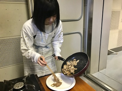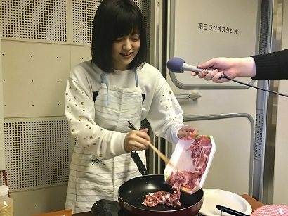 特製の生姜焼きのたれをかけて、よーく炒める。スタジオには本当にいい香りがしていたんだよ。お伝えできないのが残念。