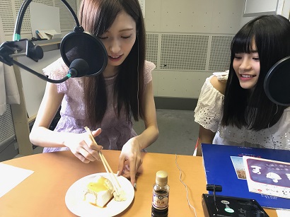 ということで2人への勝負。ルールは簡単。BSNのレコード室から直感で3枚のレコードを持ってきてもらい、それを聴き比べる。どっちが保護者、石塚の心をつかむインパクトかあるかどうかで、勝敗が決まる。そして勝った方にはお好きな薬味でお豆腐を食べて頂き、負けた方は勝った方からの「これで食べて」の指示のもと、その薬味の乗ったお豆腐を食べて頂く。Do you understand?