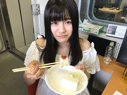 きれいなまほほんの顔が苦痛で歪んでおる。すまんまほほん。まほほんは七味唐辛子をかけてお豆腐を食べることになってしまいました。まほほん辛いの苦手な子。以前、この番組で辛口カレーを食べさせたら唇が腫れたことがあったっけ。でも、その時のまほほん、とてもセクシーだったからいいか。良くないか。