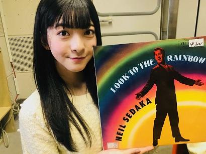 りったん。レコードのはじっこがほっぺに刺さっておる。りったんが持ってきたのはニール・セダカのアルバム。ニール・セダカは皆さんご存知か?アメリカを代表するポップシンガーソングライター。七色のジャケットがまぶしいねえ。これは本当に難しい勝負だったが、YMOがとにかくインパクト大だったので、ひなたんに軍配が上がった!