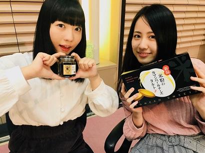 NGT48きっての優等生と言うべきか。ダンスメンというべきか。あいにゃーこと日下部愛菜ちゃんと、ニシムラナナコ―こと西村菜那子ちゃん…であります!あいにゃー久しぶり。ナナコは毎月会えて嬉しい。で、この2人に何をしてもらったかというと、来るべき朱鷺メッセ2days!4月13日のNGT48単独コンサートおよび14日のきたりえキャプテン卒業コンサートにお越しの際には、おいしい新潟みやげを買って帰って頂きたい!ということで、初開催!『新潟みやげドラフト会議』でございます。