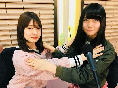 えーと。これ何のポーズだったっけ。まあよい。やってきたのはかとみなこと加藤美南ちゃんと、つぐみんこと小熊倫実ちゃん。つぐちゃんは先日中学校を卒業されたとのこと。おめでとうございます。あ。つぐみん中学生だったか。すでにNGT48の癒しの女神だ。