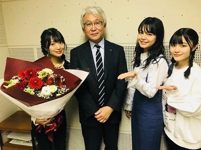 ということで生放送した証。OA終了直後の午後9時50分の時計を指さす、りえちゃんにひなたんにれいにゃーであります。朱鷺メッセ2daysに、昨日は神戸で握手会。ひなたんは東京で、れいにゃーは新潟でひと仕事してのBSN入り。りえちゃんに至ってはもう何本テレビとラジオに出てきたの。本当にお疲れさまでした!