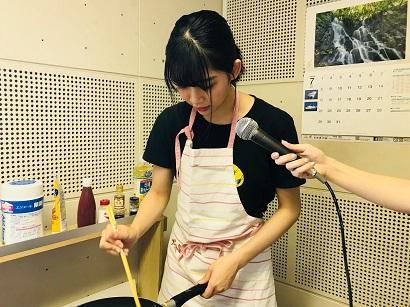 で、今夜2人にチャレンジして頂いたのは…夏バテ防止には栄養満点のモノを食べよう。栄養満点と言えばタマゴであります。ということで、今夜は卵料理の定番中の定番。オムライス!では、オムライス対決の模様を振り返ってみよう!まずは『オムライス得意です!』という、みはちゃんから。