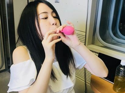 8秒でふくらませおった。さすがカニ子。風船をくわえながらのドヤ顔である。では、ナナコォ!