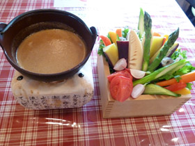 黄金のバーニャは温めても良し、冷蔵庫で冷やして食べても良し! お好みの野菜にディップして召し上がれ♪ |