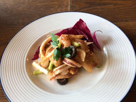 | ⑨ | お皿にトレビスをしき、⑧を盛りつけイタリアンパセリを飾る。 |