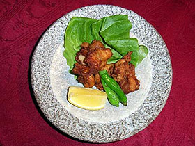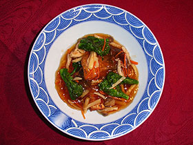 器に揚げた鯖を盛り、Cのあんをかけて出来上がり。 |