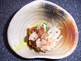 弱火で炒め、豚肉の表面は、若干カリカリ、中の牡蠣は半分レアが美味しい。
