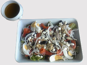サラダは、適当な大きさにカットして水にさらし水分をよく取る