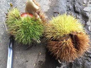 里山には栗がたくさん落ちていました。