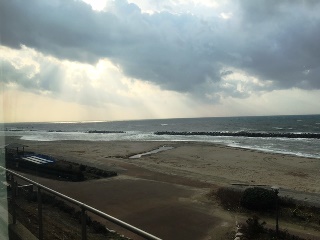 日本海の絶景が自慢の村上市瀬波温泉にある