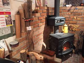 薪ストーブが並んでいますが、今日は外でも