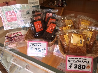 手作りの“ピーナッツせんべい”や“ゴマせんべい”、“きな粉飴”もあります。