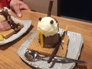 アイスとお菓子でお雛様とお内裏様になっています。(各400円)