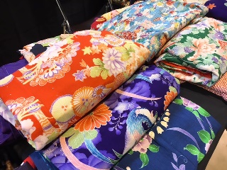 中継では、栃木から出店のアンティークの着物を扱う