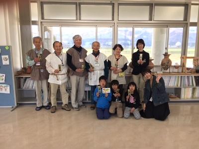 職員の松野さんと釜蓋遺跡応援団の方々に集まって頂き
