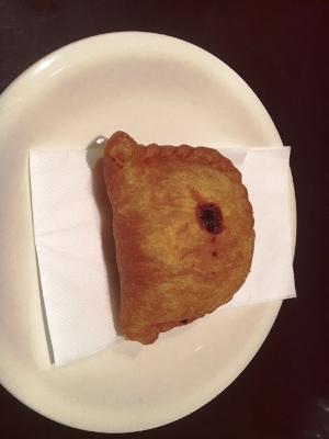 パイ生地の中にはタマネギやひき肉の具がたっぷり!