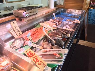 入り口近くには七輪で鮮魚を選んで浜焼きが出来るスペースもあります!