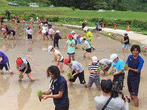 地元の方に指導してもらいながら楽しそうに田植えをしていました。