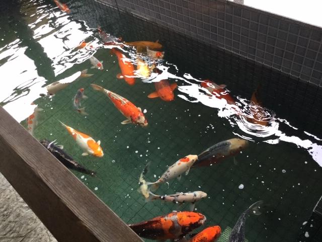 玄関前では立派な錦鯉がお出迎えしてくれます。