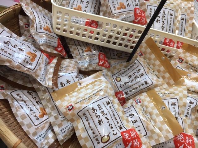 「キャラメルあられ」「豆乳きなこあられ」も販売されていて