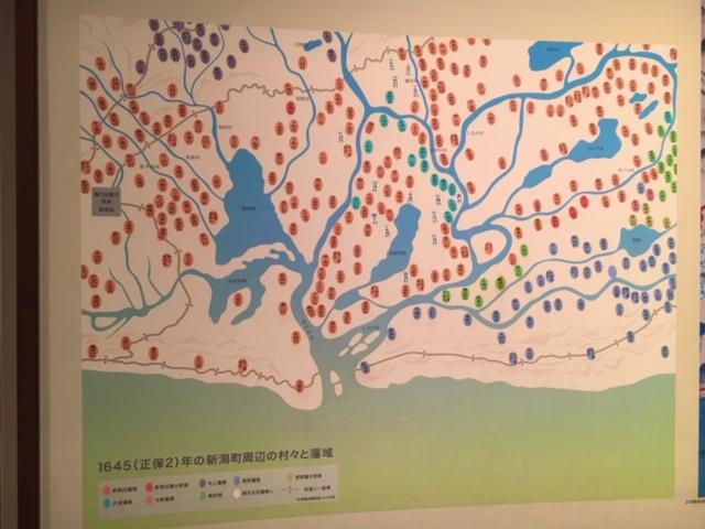 「1645年(正保2年)の新潟町周辺の村々と藩域」という大きなパネルがあり
