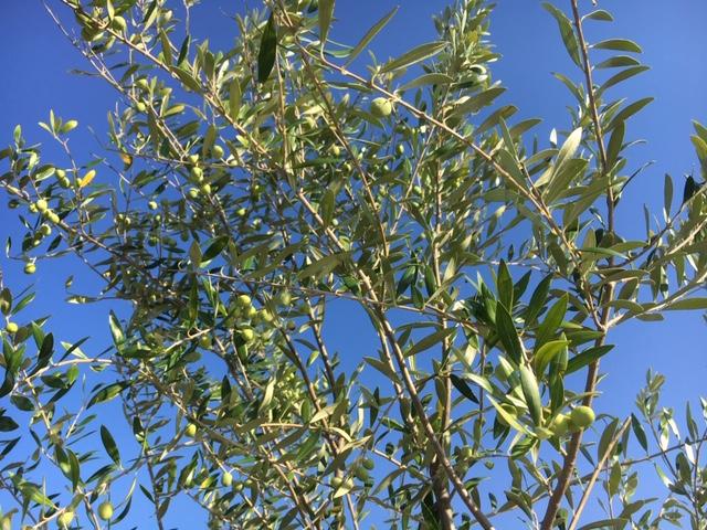 田園風景に囲まれ、中央にはオリーブの木が植えられています。