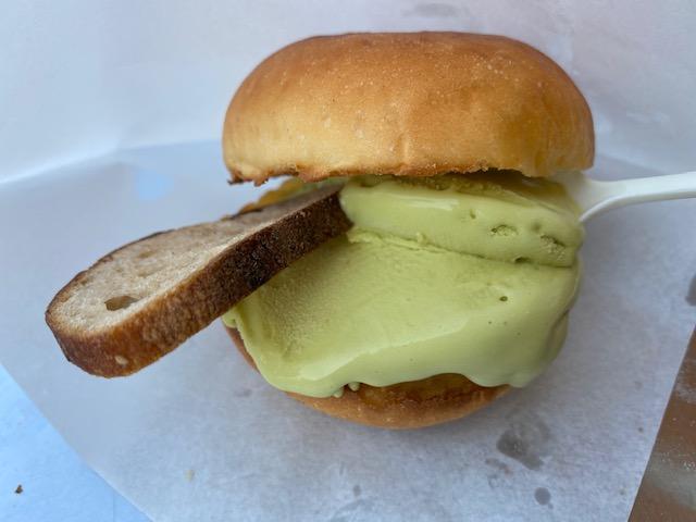 特製のバンズにバターを塗ってトーストし、ジェラートをセレクトして挟みます!