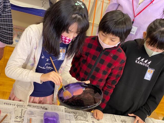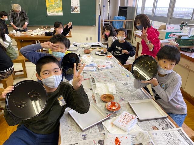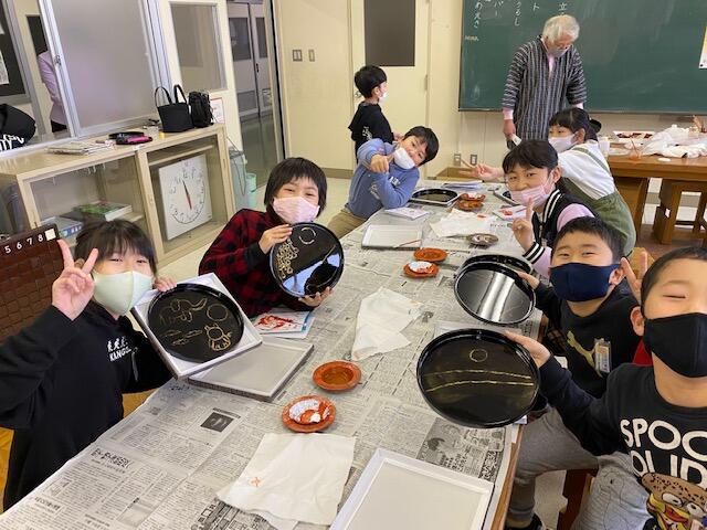3年生~6年生まで15名がうるし塗り丸盆に「蒔絵」を体験していました!