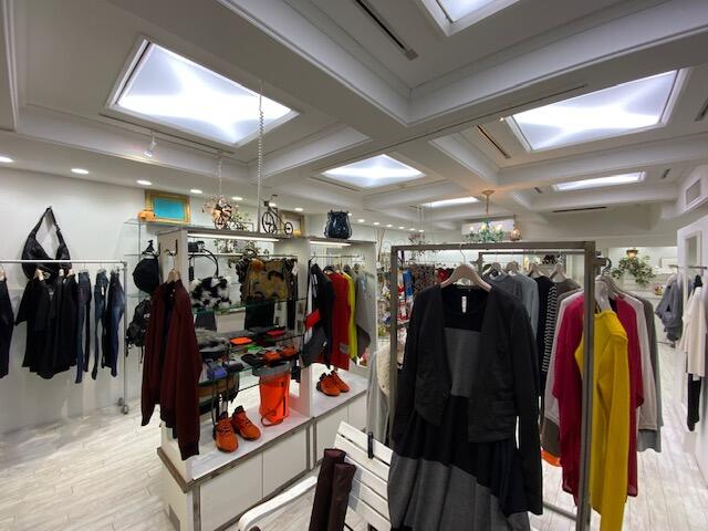あたたかそうなニット製品などがずらりと店内に並びます。
