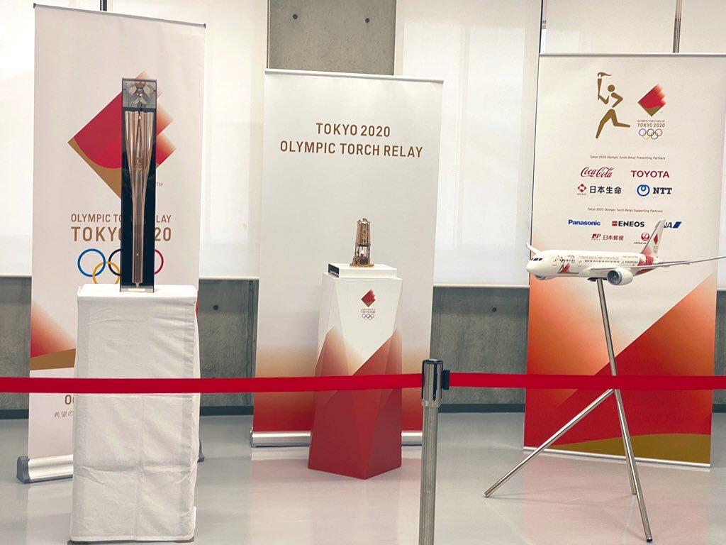 トーチ、聖火を運んできた飛行機の模型が展示されていました。