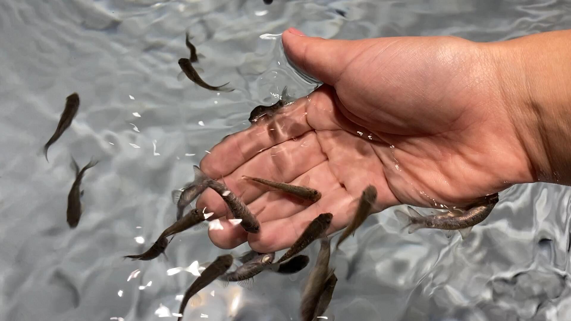 そっと手を入れると水槽内120匹のガラ・ルファが一気に集まってきます。