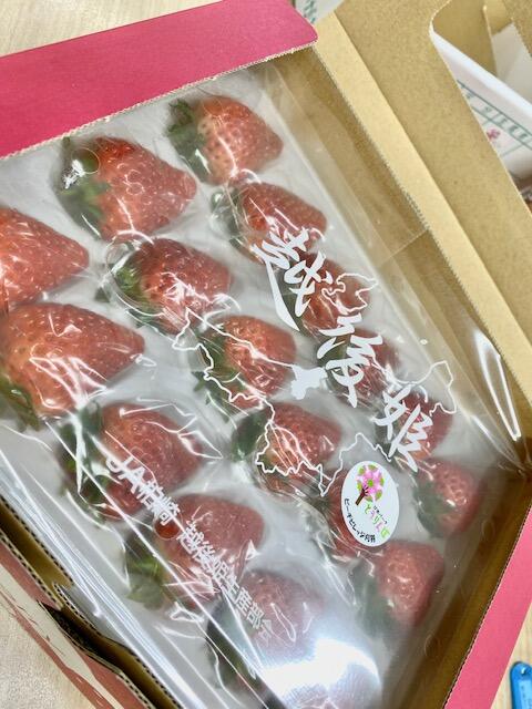 いちごが1つ1つ浮いているような梱包“ゆりーかーご”で発送されます。