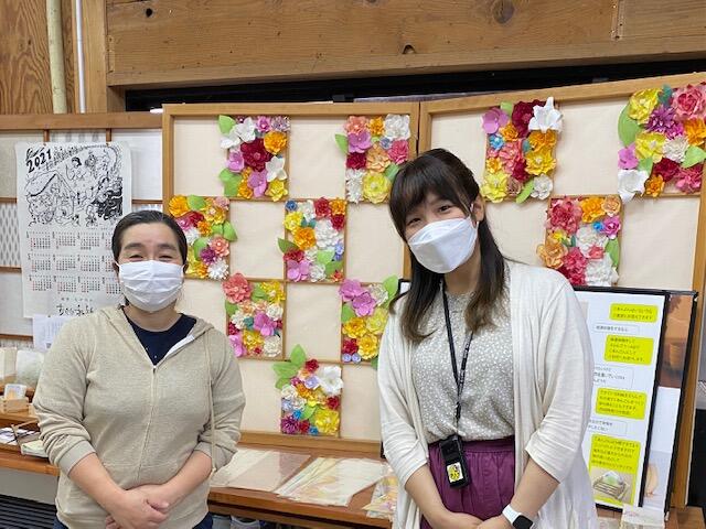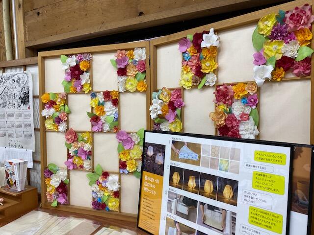 和紙で作る花をフォトスポットにした作品が工房に展示されていました。
