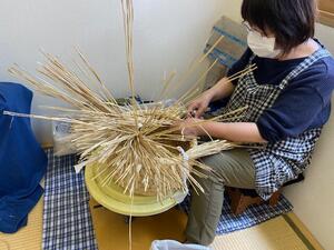 コシヒカリの稲わらを伝統の技術で編み上げて作る猫ちぐらは