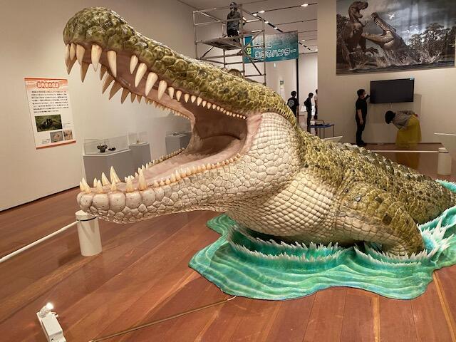 白亜紀の巨大ワニ「デイノスクス」の復元模型が展示されています。