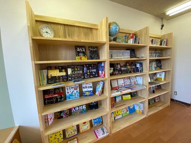 マンガや図鑑がずらりと並びます。