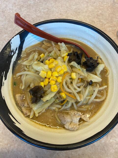 つるつるの太麺に、旨味たっぷりの味噌スープが絡みます。