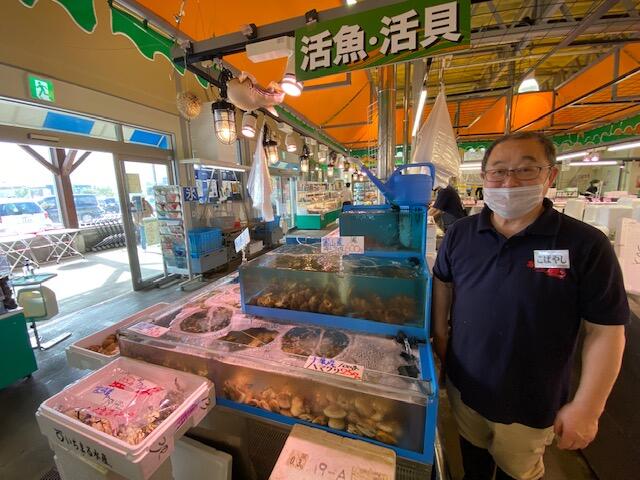 店内にはお土産品、日本酒、新鮮な魚介、魚介加工品が並びます。