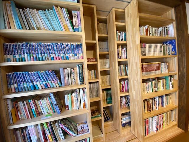 押し入れだった場所に、可動式の本棚が三重になり蔵書が詰まっています。